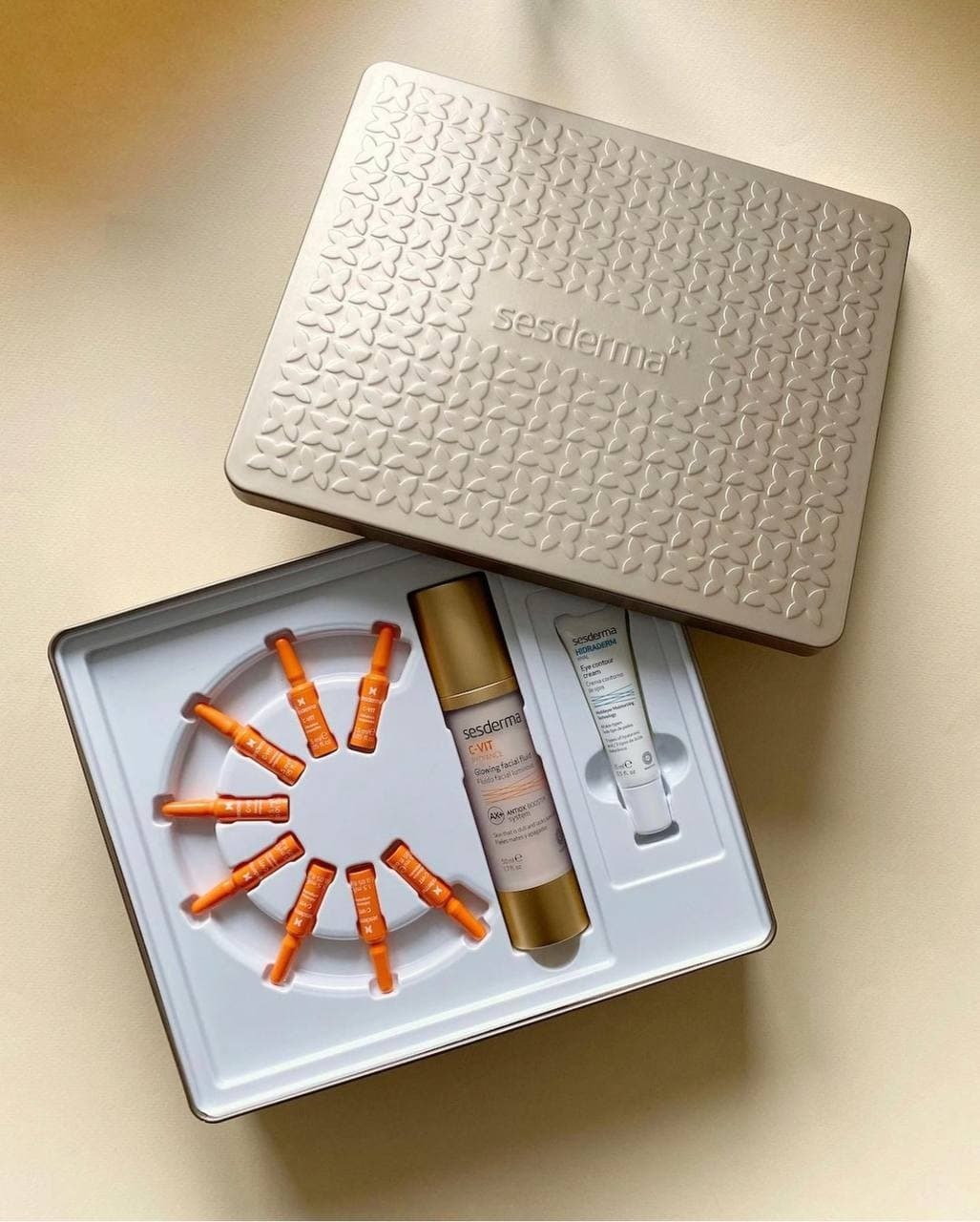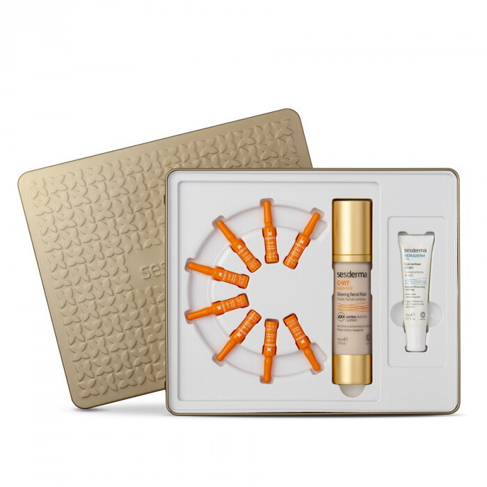 Sesderma GLOWING LOVE - Подарочный набор "Сияние любви" (C-VIT Флюид для сияния кожи 50 мл + C-VIT Средство в ампулах с витамином С 8 шт по 1,5 мл + HIDRADERM HYAL Крем-контур для зоны вокруг глаз 15 мл)