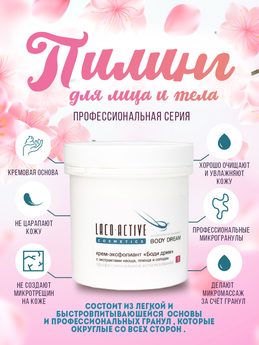 LACO ACTIVE Body Dream - Мягкий пилинг-крем, эксфолиант для лица и тела от Лако Актив, 250 мл