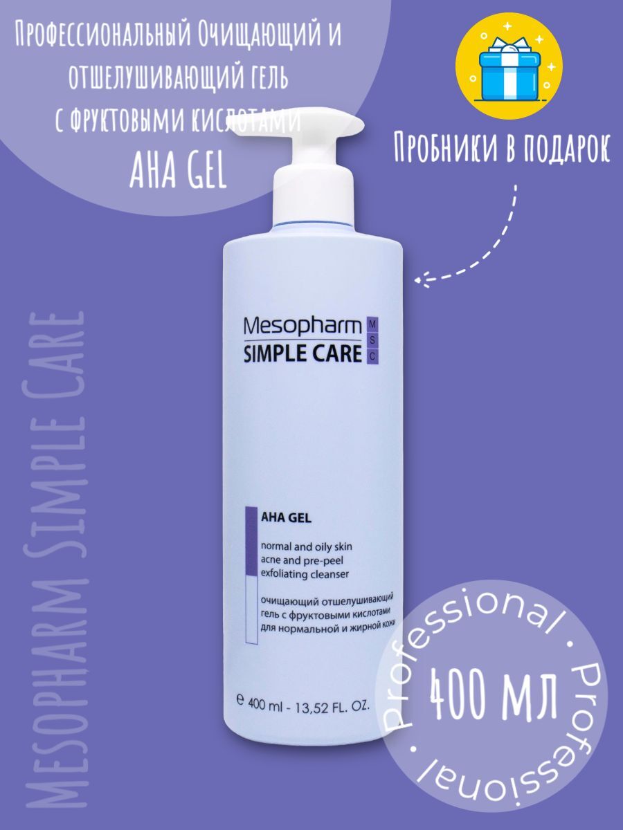 Mesopharm Simple Care AHA GEL - Профессиональный очищающий и отшелушивающий гель-пилинг с фруктовыми кислотами от Мезофарм, 400 мл