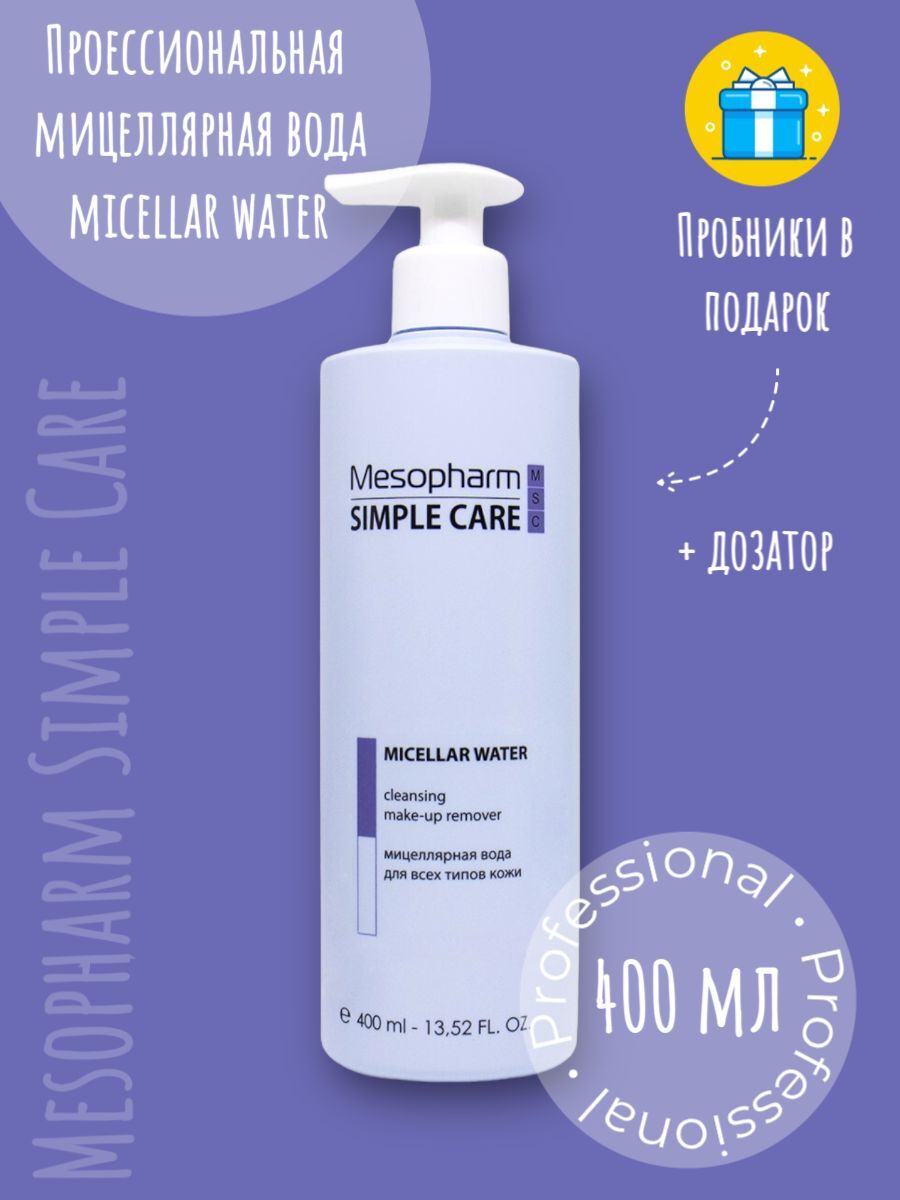Mesopharm Simple Care MICELLAR WATER - Мягкая профессиональная мицеллярная вода для снятия макияжа и загрязнений кожи + дозатор, 400 мл