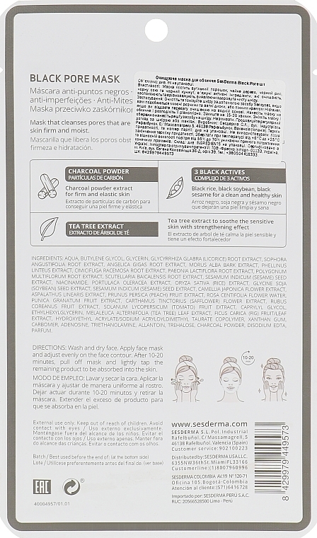 Sesderma BEAUTYTREATS Black Pore Mask - Очищающая тканевая маска для лица с экстрактом частиц угля